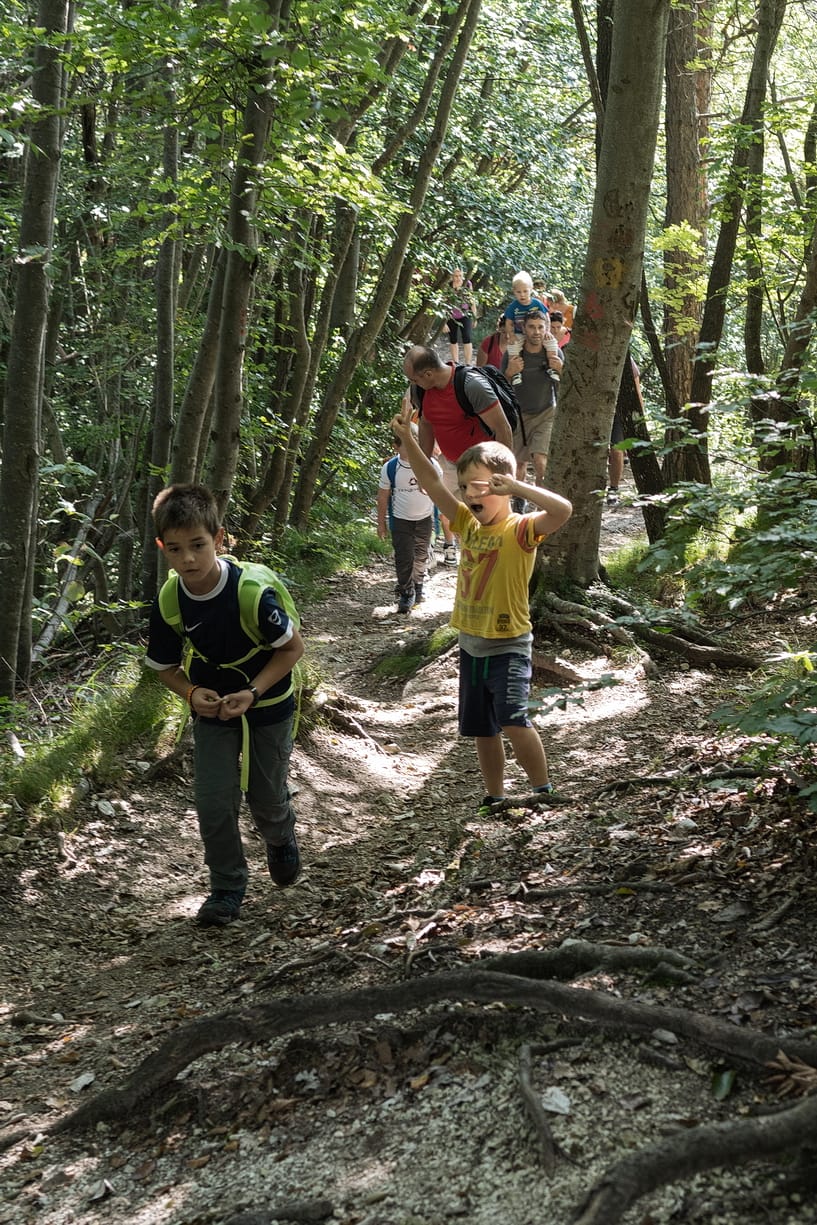 Letos smo uvedli majhno noviteto in sicer novo traso poimenovano Mladinski pohod. Ker so otroci in njihovi starši vsako leto bolj zmogljivi smo pot po postanku na Gontah nadaljevali po lepi makadamski cesti mimo Tošča do doma na Govejku ter se spustili do gostišča Legastja, od tam pa z avtom do gostilne Vihre, kjer nas je oštir Klemen s svojo ekipo zopet razvajal z izvrstno kulinariko in povsem do vrha napolnil naše že precej prazne in lačne trebuščke.